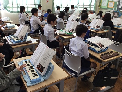 いよいよ、アンサンブルのスタートです。リコーダーで二重奏ができ、そのベースに鍵ハモの低音が響きます。