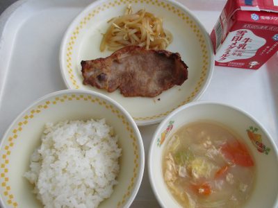 今日の献立は「豚肉の生姜焼き、もやしソテー、卵の味噌汁」でした。