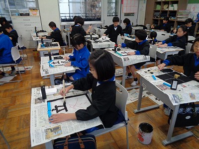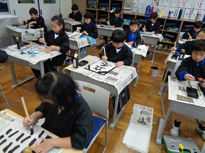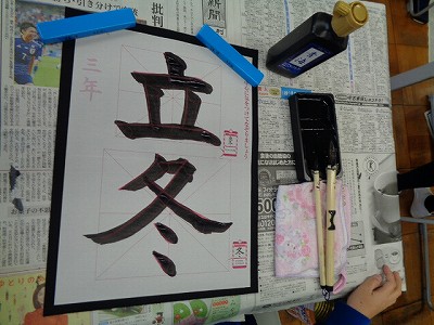 全体的な文字のバランス、「冬」の右はらいをポイントに、各自が黙々と仕上げていました。