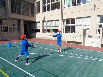だんだん足を使ったりして運動がレベルアップ!運動の説明の時には、お手伝いも楽しく取り組んでいました。