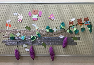 秋の1階廊下掲示は、サツマイモに...