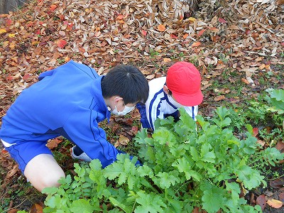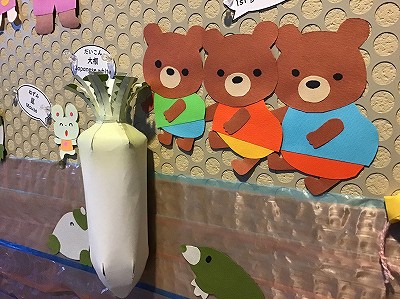 【冬のはじめの楽しい掲示(大根の収穫)】