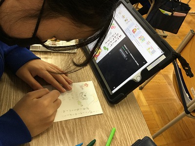 5年生は、今日の国語で、一枚はそのコンクール用、もう一枚はクラスのみんなに送る用の、2通を書きました。