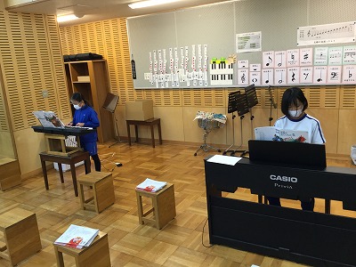 今日は、その技術を使って、音楽室の楽器で演奏しようと取り組みました。