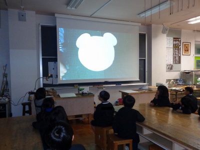 「紙版画作り」では、まず先生から紙版画の作り方や、重ね貼りについて説明を聞きました。