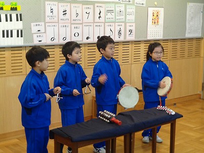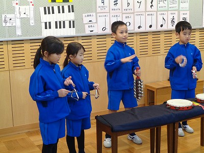 リズムや音の強弱を付けるなど、グループで工夫することができました。