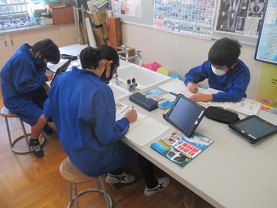 国語では「伝記」を読み、その人物の偉業をキャッチフレーズのように讃え、どのような仕事を収めたのかを、短い文章に綴る学習をしています。