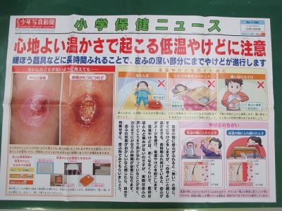保健室前の【保健ニュース】にも「低温やけど」が詳しく載っています。