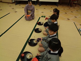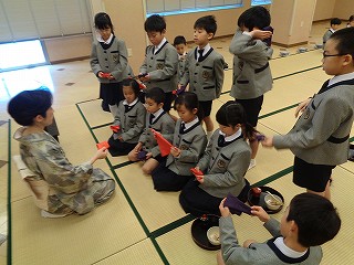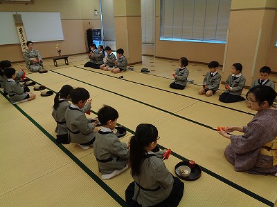 いつもと同じように、お点前さんとお客さんの2グループに分かれて行いました。