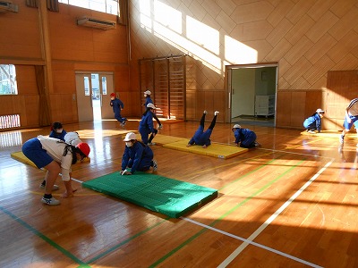 体育の学習は、引き続きマット運動を行っています。
