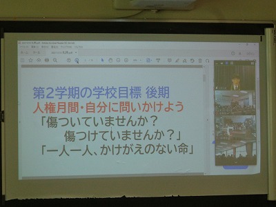 2学期後半の学校目標の大テーマは「人権尊重」です。