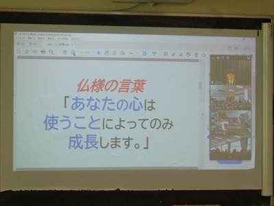 「自分のことを考え、そして周囲のことも考え、人との関わりを大切にして下さい。そのことで、あなたの心は豊かになり、相手の思いが想像できるようになります。それを「利他の心」といいます。自分の行いで良かったこと・惜しかったところを反省し、今から生かそうとしてください。それが心を働かせることです。」