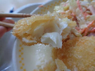 加熱することで身がより柔らかくなり、今日のフライも身の部分がフワフワとしていました。