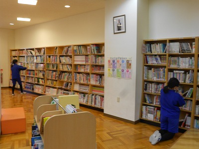 冬休み用の本の貸し出しに向けて、全校のみんなが本を選びやすいように整理しました。