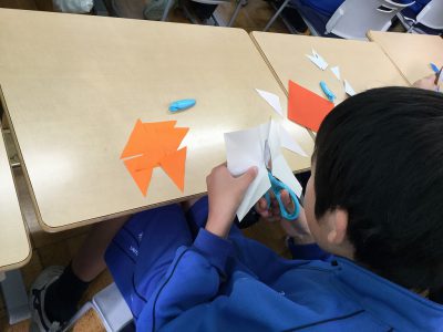昨日は「ていねいに折ること」「きれいに切ること」をめあてに準備の時間を過ごしました。
