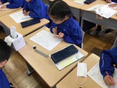 子どもたちは、すぐにお清書に取りかかってくれました。