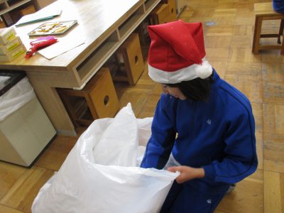 その後、クリスマスの遊びとして、昨日のASEで楽しんだ新じゃんけん遊びと、「サンタさん」ゲームをしました。