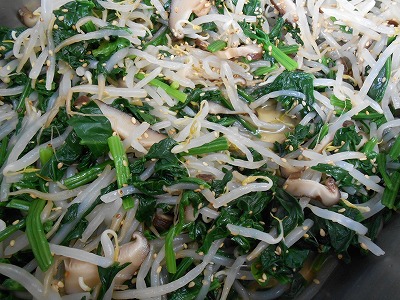 ☆ ほうれん草、もやし、しいたけの胡麻あえです。