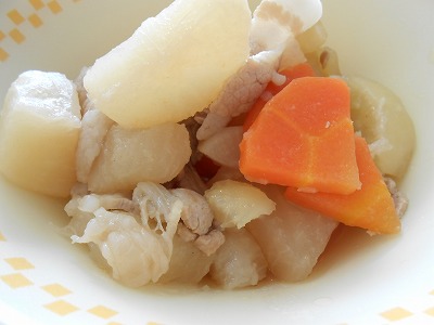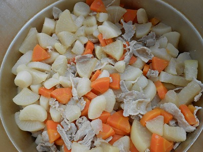 ひと口大にするため、いちょう切りにして大きさを合わせましたが、小さい大根は丸い形のままにしています。