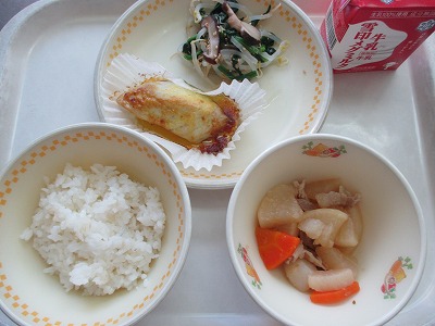 明日の献立は、2学期最後の給食で「冬野菜のカレー」です。お楽しみに!