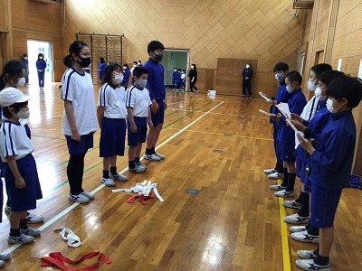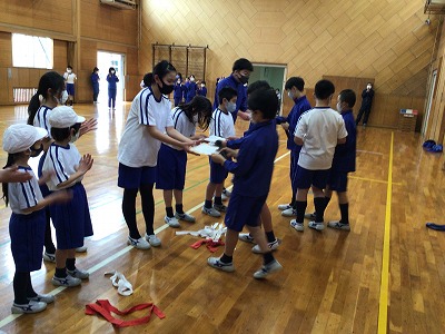 昨日の委員会で準備をしていた“優勝の賞状”(まだ班名・氏名は書いていません)を渡すセレモニーを行いました。