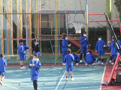早朝からの積雪が解けて無くなりそうでしたが、雪をかき集めて雪投げをしていました。久しぶりの雪の感触に大はしゃぎです。