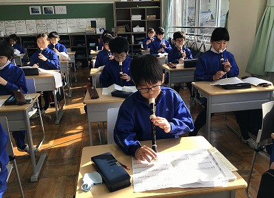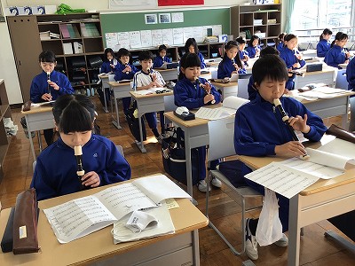 教室では、4曲のリコーダー奏完成を目指して取り組んでいます。