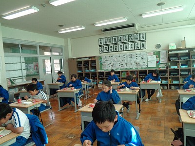 今日は、今年最後の給食でした。4年生の教室では、毎日みんながたくさんおかわりをし、食缶が必ず空っぽになっています。この2学期も、食缶に残飯が残ったことは片手で数えるほどしかありませんでした。今日の献立は、みんなの大好きなカレーです。おいしい給食をたくさん食べて、みんな毎日元気をもらっています。作ってくださる方や食材に感謝して、1年最後の給食を締めくくりました。