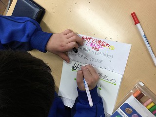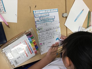 今日は、表紙となる画用紙に表題を付け、さし絵を描いて仕上げました。