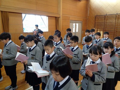 4年生は、四年目の貫禄を感じさせる歌いっぷりでした。心を落ち着かせる、整える良い機会ともなりました。