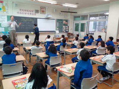 ポール先生とヨコヤマ先生の会話を聞き取ったり、発音練習をしたりしました。