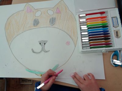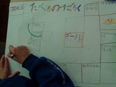 「福笑い」「すごろく」「めんこ」「かるた」の中から、作りたい遊びを選び、みんなで楽しく遊べるように工夫して作っています。