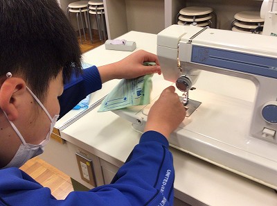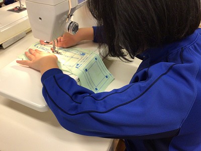 「先生、下糸がなくなりました」「全部、返し縫いで終わっていいのですか?」など、今日の目的を理解しながら、進めていました。