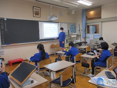 今日が、“ミシン実習初めて”という5年生もいます。友達に見守ってもらいながら、順調にペダルを踏んでいます。