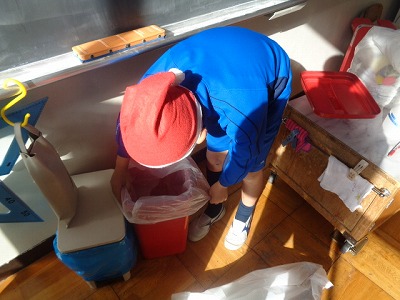 もくもくがんばるサンタクリーンさん。各教室のごみを集めてくれます。