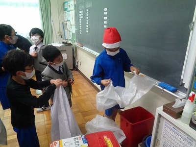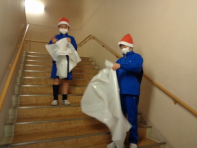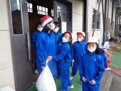 1年生にも大人気のサンタクリーンさん。一仕事を終えました! ごくろうさま!