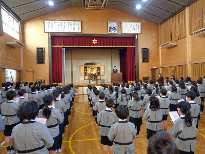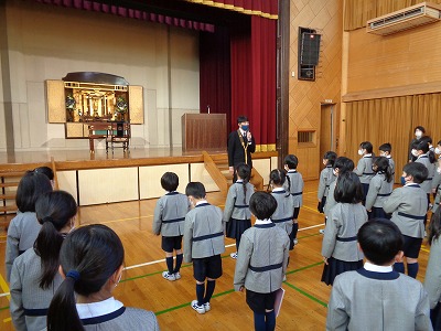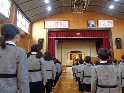 第2学期の終業式を実施しました。一年前はオンライン礼拝を各教室で視聴しましたが、今回は皆が講堂に集まることができました。
