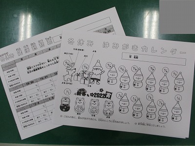 保健室からは「冬休み歯みがきカレンダー」をお配りしています。