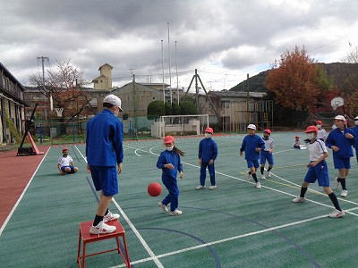 体育は3回目のポートボールです。まずは、ボールになれるためドリブル練習とパスの練習からはじめます。ボールに振り回されながらも、必死にコントロールし、グラウンドを1周します。