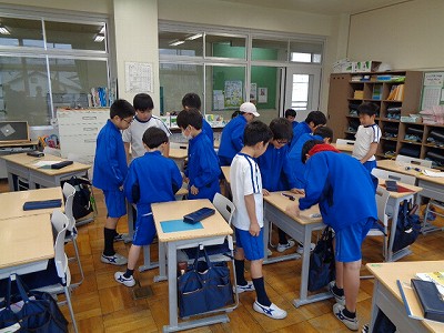 中間休みの時間になっても雨は止まず…。嘆くかなと思いきや、教室で出来る遊びを工夫して楽しんでいます。「楽しみを考え出す力」に拍手です。