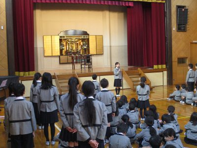 「精進・持戒・布施・禅定・忍辱・智慧」を目指し、仏さまの願いにかなうような、立派な人になれるように、各学年でそれらの一つに具体的な目標を持って取り組んでいます。