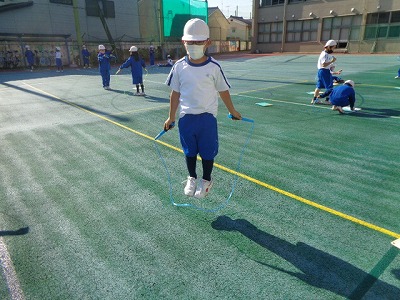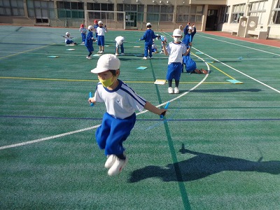 まだ、入るタイミングがなかなか難しいようですが、少しずつ慣れてきています。縄とびは、縄とびカードを使って回数を数えました。