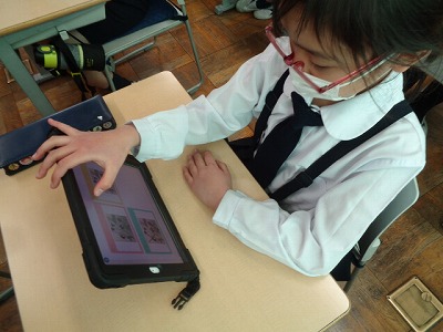 学習の後半は、タブレットを用いてMr.Yokoyamaの問題に取り組みます。