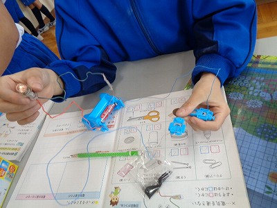 1/24木【豆電球を使って】 お知らせ 2019/01/24 理科の「豆電球」は、実験セットを使って、身近なものが電気を通すかどうかを調べました。 わりばし、くぎ、空きかん、こう貨…などなど 電気が通れば・・・豆電球が光ります! 最後に、みんなで電気がついた物、つかなかった物を確認しました。 ←前の記事 お知らせの一覧 次の記事→ 文教トピックス 学年だより1年 学年だより2年 学年だより3年 学年だより4年 学年だより5年 学年だより6年 一覧はコチラ カテゴリー 文教トピックス (200) 文教トピックス (5) 学年だより1年 (160) 学年だより1年 (3) 学年だより2年 (3) 学年だより2年 (160) 学年だより3年 (3) 学年だより4年 (3) 学年だより5年 (3) 学年だより6年 (3) 文教小ニュース (4,428) お知らせ (1,004) イベント (12) 入試関連 (13) 2024年度 (1,063) 文教トピックス (198) 学年だより1年 (172) 学年だより2年 (170) 学年だより3年 (171) 学年だより4年 (177) 学年だより5年 (175) 2023年度 (878) 文教トピックス (204) 学年だより1年 (165) 学年だより2年 (167) 学年だより3年 (169) 学年だより4年 (173) 2022年度 (738) 文教トピックス (216) 学年だより1年 (174) 学年だより2年 (174) 学年だより3年 (174) 2021年度 (571) 文教トピックス (217) 学年だより1年 (177) 学年だより2年 (177) 2020年度 (455) 文教トピックス (249) 学年だより1年 (206)