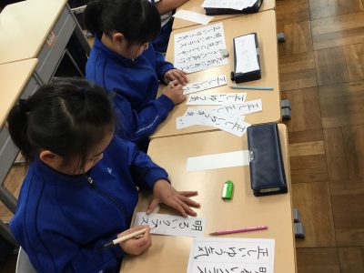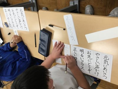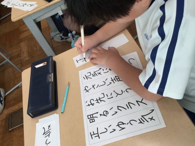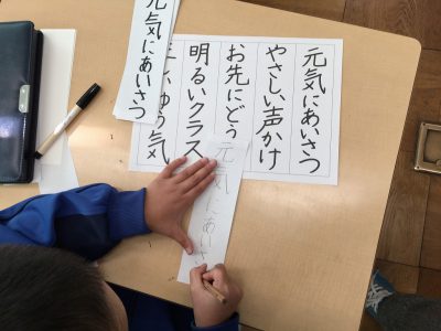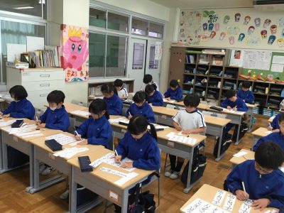 1/24水【フェルトペンで書き初め】 お知らせ 2018/01/24 2月5日から始まる作品展に向けて、フェルトペンのお清書を始めています。 お手本の言葉は、2年キッズが目当てとする学級の姿を思い浮かべることができるものです。 子どもたちは、自分が書きたい言葉を選び、練習を開始しました。 始めは、鉛筆。次第にフェルトペンへ移行していきます。 姿勢も、お気に入りの字を書くポイント。落ち着いて集中して取り組んでいます。 明日は、完成を目指します! ←前の記事 お知らせの一覧 次の記事→ 文教トピックス 学年だより1年 学年だより2年 学年だより3年 学年だより4年 学年だより5年 学年だより6年 一覧はコチラ カテゴリー 文教トピックス (200) 文教トピックス (5) 学年だより1年 (160) 学年だより1年 (3) 学年だより2年 (3) 学年だより2年 (160) 学年だより3年 (3) 学年だより4年 (3) 学年だより5年 (3) 学年だより6年 (3) 文教小ニュース (4,428) お知らせ (1,004) イベント (12) 入試関連 (13) 2024年度 (1,063) 文教トピックス (198) 学年だより1年 (172) 学年だより2年 (170) 学年だより3年 (171) 学年だより4年 (177) 学年だより5年 (175) 2023年度 (878) 文教トピックス (204) 学年だより1年 (165) 学年だより2年 (167) 学年だより3年 (169) 学年だより4年 (173) 2022年度 (738) 文教トピックス (216) 学年だより1年 (174) 学年だより2年 (174) 学年だより3年 (174) 2021年度 (571) 文教トピックス (217) 学年だより1年 (177) 学年だより2年 (177) 2020年度 (455) 文教トピックス (249) 学年だより1年 (206)