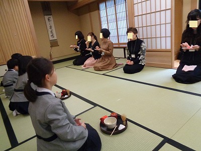 今日は「ありがとう茶会」。高等学校の作法室をお借りして行いました。
