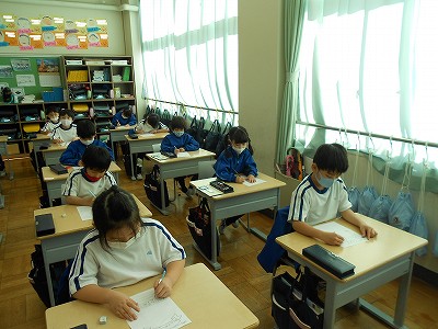 5校時の国語は、1校時にインタビューをして分かったことのメモを見ながら、文章にまとめました。来週は、仕上がった文章を読み合う予定です。