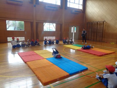 4枚のマットをつなげて、連続技の発表会をしました。