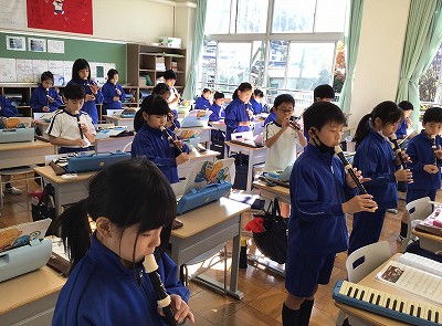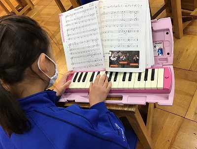 今日は、鍵盤ハーモニカを使って「♪せい者の行進」の“低音パート”を練習します。