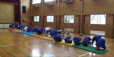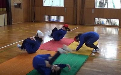 マット運動は、テストです。2人以上が同時に2種類の技に挑戦します。
